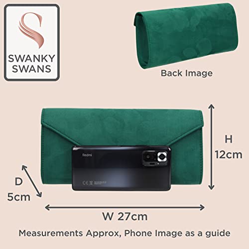 SWANKYSWANS Leona Busta Pochette In Pelle Scamosci, Verde, Taglia unica