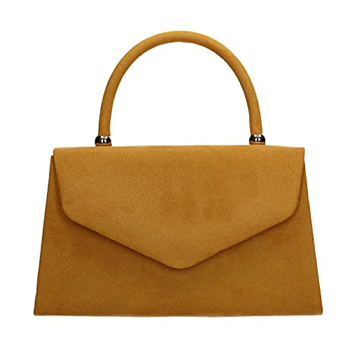 SwankySwans - Pochette da donna Kendall in pelle scamosciata, borsa envelope, per feste e balli, Senape, Taglia unica