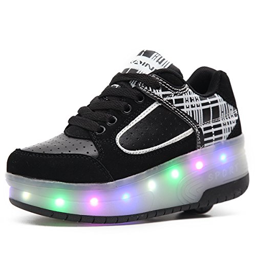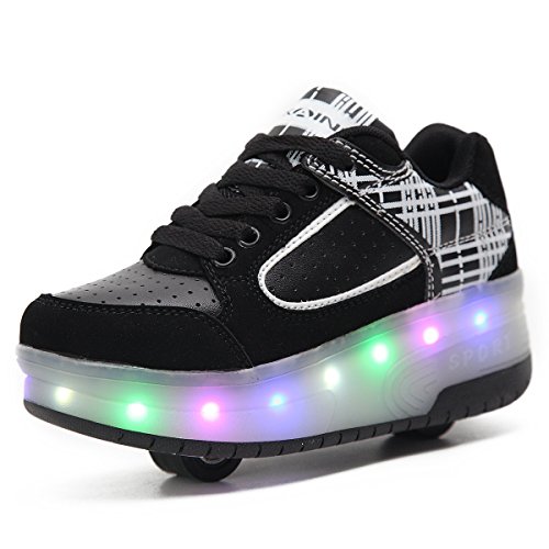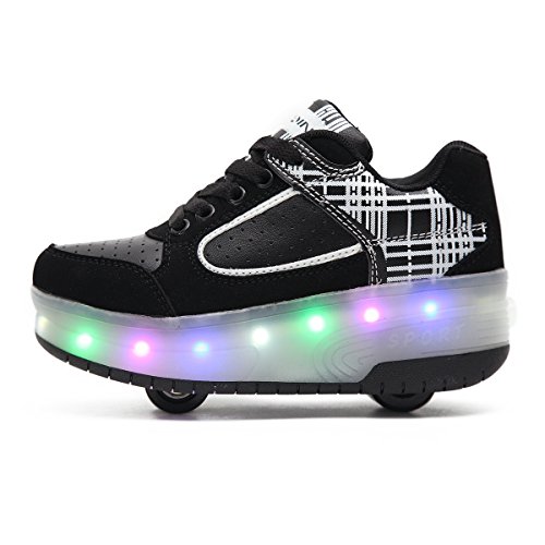 HUSK'SWARE Bambini LED Scarpe Schuhe Kinder da Skateboard da Skate delle Ragazze Ragazzo Scarpe da Ginnastica con Due Ruote Sportive Pattini con Le Ruote