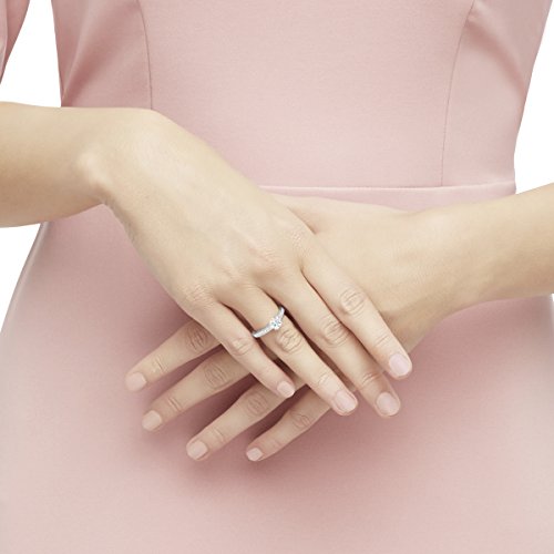 il ottimo anello rodiato propone uno chaton circolare centrale e chaton più piccoli disposti lungo la parte superiore del gambo