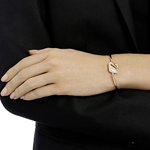 Swarovski Bracciale rigido Swan, bianco, Placcato oro rosa