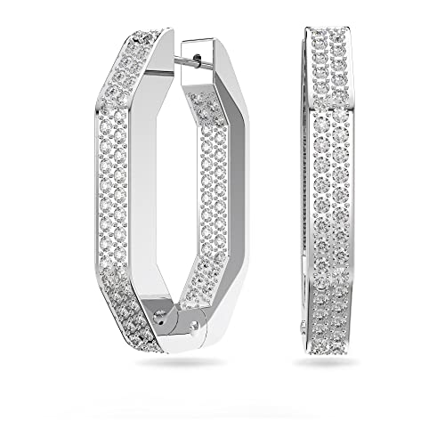 Swarovski Orecchini a cerchio Dextera, Ottagono, cristalli pavé, Medi, Bianco, Placcato rodio