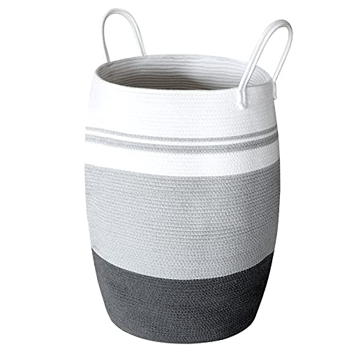 SWAWIS Cesto Cotone Intrecciato, 105 L Cesto Portabiancheria in Corda di Cotone Intrecciata, Cesta Portabiancheria Portaoggetti Tessuto Naturale, 65 x 49 cm, Bianco e Grigio
