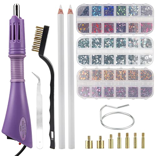 SWAWIS Hotfix, applicatore a 3 scatole di colori misti, retro piatto, Gems Crystal Hotfix, strass, applicatore con 7 punte applicatori, viola