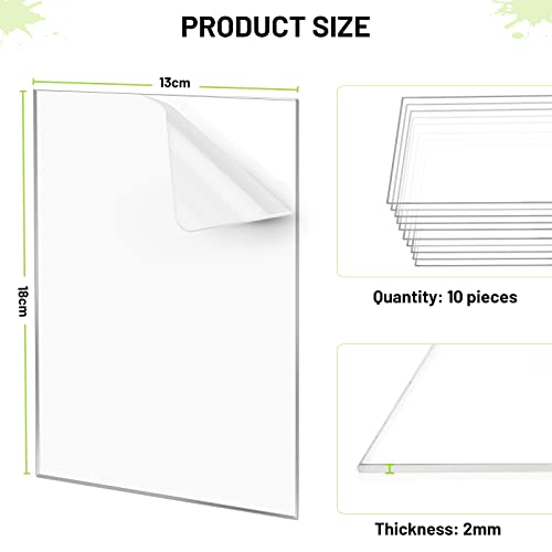 SWAWIS 10 Pezzi Plexiglass Trasparente Pannelli Plexiglass 18x13cm 2mm Spessore Fogli Acrilici Trasparenti Lastre Acriliche Foglio in Acrilico Trasparente per Decorazione Domestica, Display, Cornice