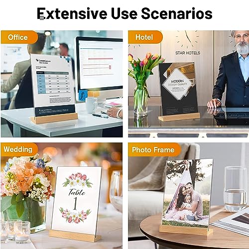 【DISPLAY MULTIFUNZIONALE】 Il supporto da tavolo con base in legno può esporre foto, poster, immagini, loghi, menu, paesaggi o volantini in modo flessibile e chiaro. L'espositore da tavolo inclinato è perfetto per ristoranti di lusso, caffè, feste di matrimonio, uffici, hotel, negozi, mostre, ecc. Può creare una pubblicità accattivante e attirare l'attenzione della gente.