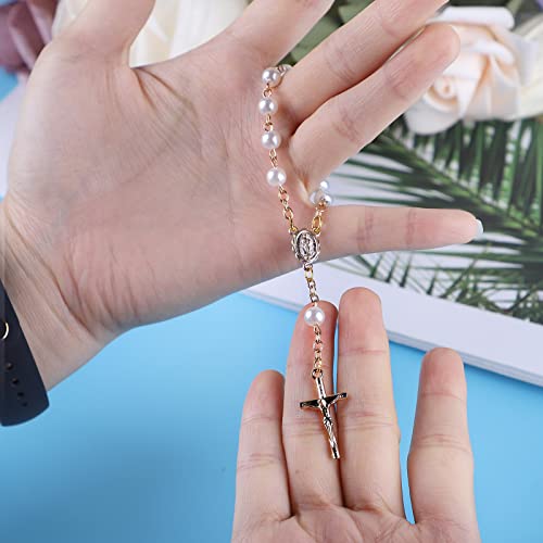 【Facile da indossare】 Diametro della perla acrilica: 6 mm, lunghezza del rosario battesimale: 13,5 cm, peso: 5 g;