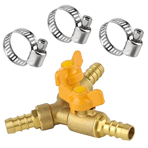 SWAWIS Raccordo a 3 Vie Splitter Connettore Adattatore Valvola di Arresto del Tubo Valvola a Sfera in Ottone con 3 Morsetti per Aria Acqua Gas (per ID tubo 10 mm-11 mm)