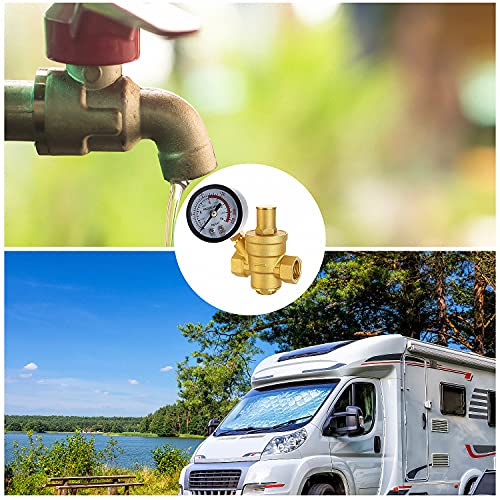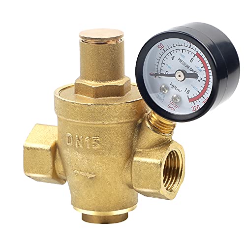 SWAWIS Regolatore di Pressione dell'Acqua DN15 1/2 Pollici Regolatore di Pressione d'ottone con manometro, regolatore di Pressione dell'Acqua Regolabile valvola di Sollievo