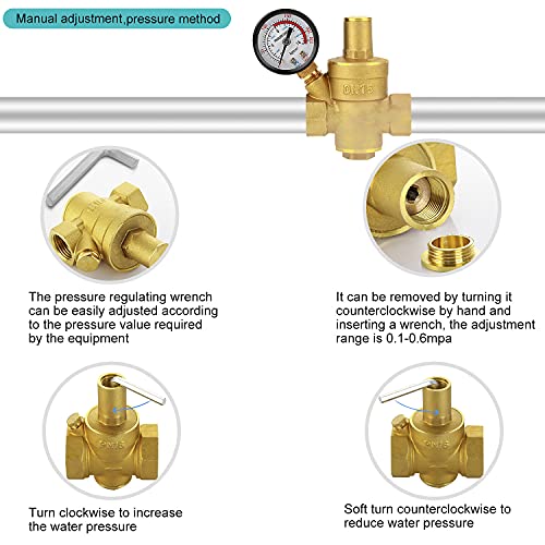【Facile da usare】 Il set di riduttori di pressione dell'acqua viene fornito con un manometro, in modo da poter controllare la pressione facilmente e chiaramente. Dotato di 2 strumenti di regolazione, la pressione può essere regolata liberamente.