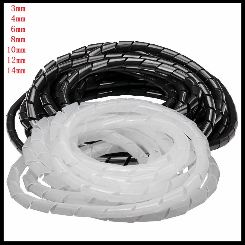 1Pc SWB-03~14 3mm / 4mm / 6mm / 8mm / 10mm / 12mm / 14mm White / Black Spiral Cable Wire Wrap Tube Computer Manage Cord Clear