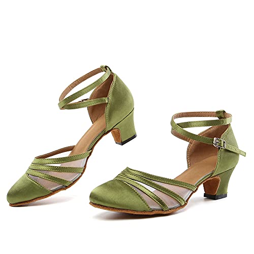 SWDZM Donna Scarpe da Ballo Latino Chiusa Raso Tango Salsa Moderno Professionali Performance Scarpe da Ballo,Heel-4.5CM,Model-YCL189 Verde 37 EU