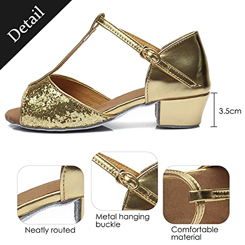 SWDZM Scarpe da Ballo Latino Donna,Scarpe da Ballo,Scarpe Ballo Latino Bambina,IT-205 Oro 36 EU/22.3CM