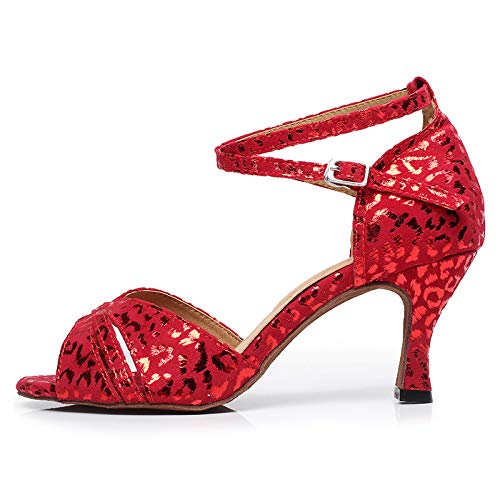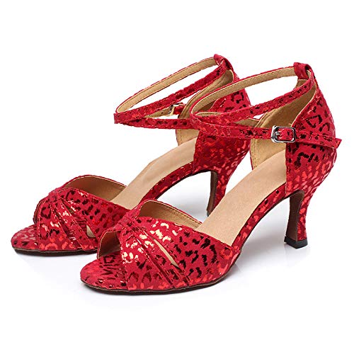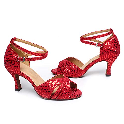 SWDZM Scarpe da Ballo Latino Donna Salsa Scarpe da Ballo da Sala Tango Samba Valzer Kizomba Bachata,Tacco-6cm,Modello-6187, Rosso, 4.5UK/38EU
