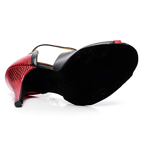 SWDZM Scarpe da Ballo Latino Salsa Donna Scarpe da Ballo da Sala Tango Valzer Moderno Salsa Sandali da Festa,Tacco-6cm,Model-6132, NeroRosso, 5UK/39EU
