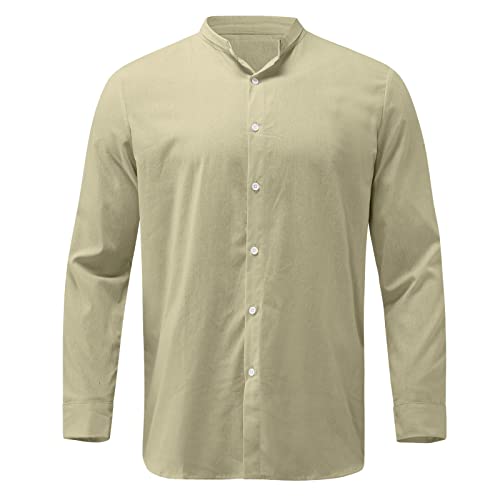 SWEATSHIRT Maschio Giù Button Cotton Linen Holiday Camicie Tropicali Spiaggia Hawaii Camicie Men Camicie di Grandi Dimensioni Men's Camicie (Beige, M)