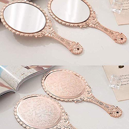 Sweelive 2 Pezzi Specchio per Trucco,Mini Specchio Portatile, Specchio Ovale Vintage, Specchio per Trucco con Maniglia Retrò, Specchio Minuscolo per Strumento di Bellezza per Trucco (Bronzo, Oro Rosa)