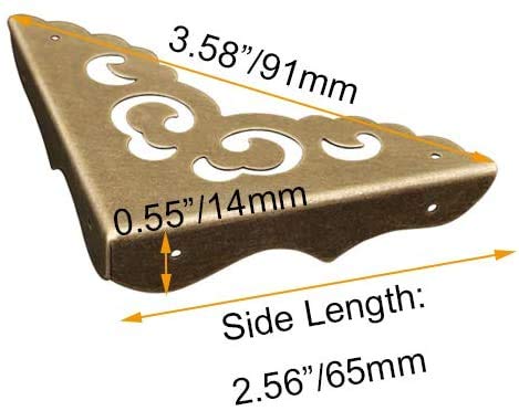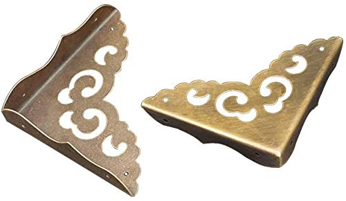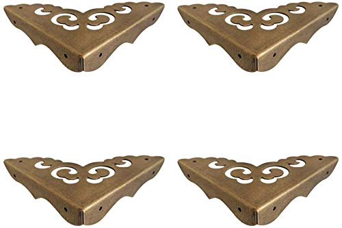Sweelive 4 protezioni angolari in ottone anticato, design vintage, per armadietti in legno, mobili e portagioie (lunghezza laterale: 65 mm)