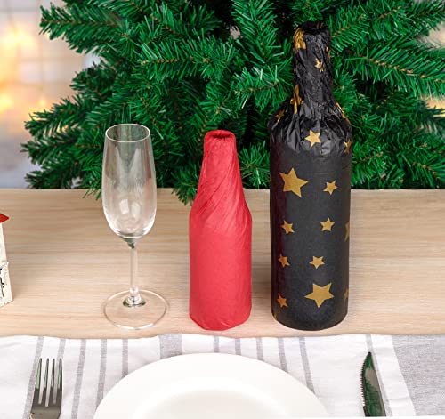 Set di 60 fogli di carta velina da regalo con 15 fogli di colore rosso, verde, bianco e nero, di cui nero con un motivo a stella bronzing appositamente progettato. Particolarmente adatto per decorare regali di Natale