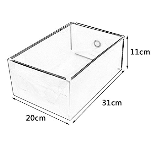 【 Materiale 】 Scarpiere in PP con struttura in acciaio. Queste scatole non contengono composti tossici e proteggono da acqua e polvere. Le scatole bianche per scarpe sono trasparenti, è facile trovare le scarpe che si desidera indossare. Dimensioni di ogni scatola: 31 x 20 x 11 cm, con manico per estrarre le scatole.