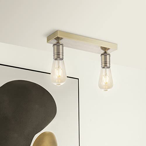 Home Sweet Home Classico Lampada Faretti LED Nitro | 30/10/10cm | Ottone | 2 luci plafoniera a spot | metallo | Dimmerabile | lampadine a LED incl. | E27 | 4W | 330lm | luce bianco caldo