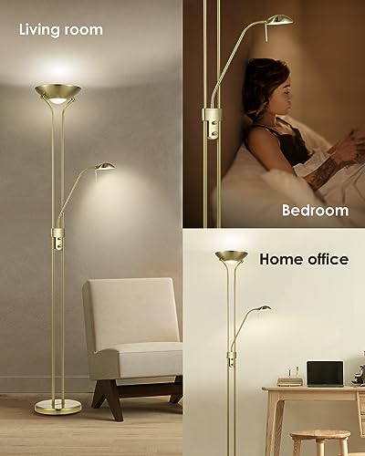 【Qualità】 Questa lampada da terra a LED dimmerabile in colore bronzo è certificata DEKRA e realizzata in metallo di alta qualità. La lampada da terra a LED è dotata di sorgenti luminose a LED, con le quali puoi goderti immediatamente la bellissima luce bianca calda. La lampada da terra è di alta qualità e abbellirà il tuo soggiorno, camera da letto o ufficio. La possibilità di regolazione della lampada da lettura a LED garantisce una flessibilità ottimale.