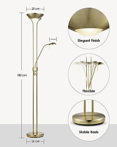 【Design】 Questa lampada da terra a LED dimmerabile nel colore bronzo è realizzata in metallo, è dotata di 2 sorgenti luminose a LED e ha un design unico. La lampada da terra a LED è dotata di una lampada da lettura a LED flessibile, che offre un piacevole contrasto e funzionalità extra. La lampada da terra a LED ha un'altezza di 180 cm, la base ha un diametro di 26 cm. Questa lampada da terra si adatta a qualsiasi interno.
