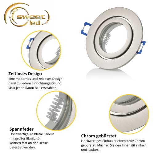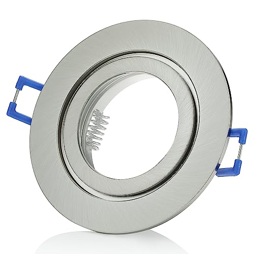 CONTENUTO DELLA CONFEZIONE - Riceverete 1x cornice da incasso incl. portalampada GU10 nel colore cromo spazzolato. Protetti dagli spruzzi d'acqua e adatti per lampadine con 230V. Non è necessario alcun trasformatore.