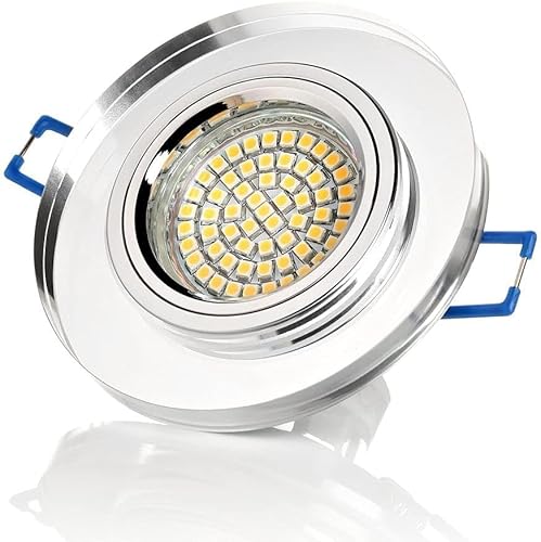 Caratteristiche dell'illuminazione: i nostri faretti da incasso contengono una lampadina da 3 W con la temperatura di colore 3000 K bianco caldo, che non è dimmerabile. Il faretto da soffitto ha una luminosità di 280 lumen con un angolo del fascio di 110°. La durata media è di 30.000 h. La tensione è di 230 V.