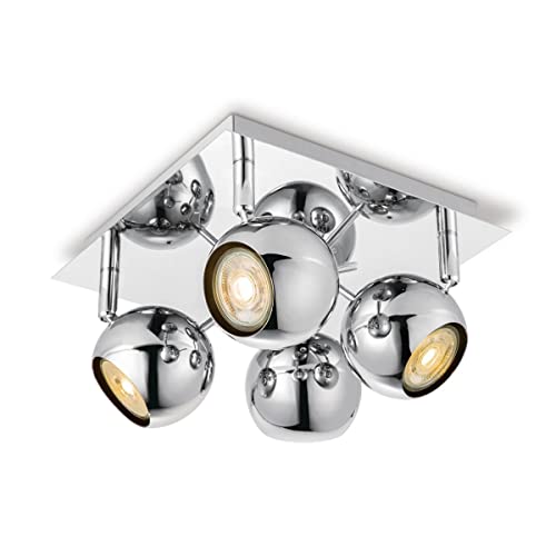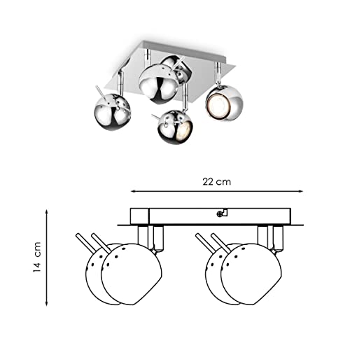 Home Sweet Home Moderno Lampada Faretti LED Bollo | 32/11.5/14cm | Cromo | 4 luci plafoniera a spot | metallo | Dimmerabile | lampadine a LED incl. | GU10 | 5W | 390lm | luce bianco caldo