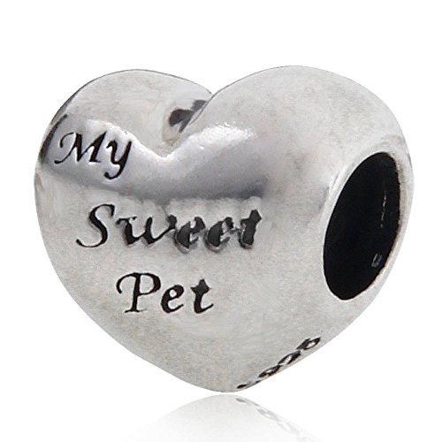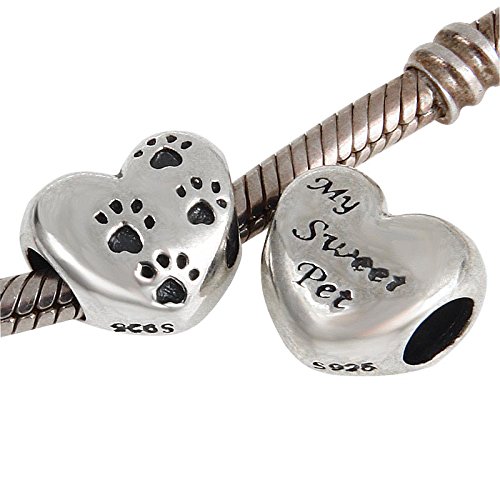 My Sweet Dog Pet Paw Print Cuore Charm 925 Argento Perle Compatibile con Bracciale catena del serpente 3 millimetri