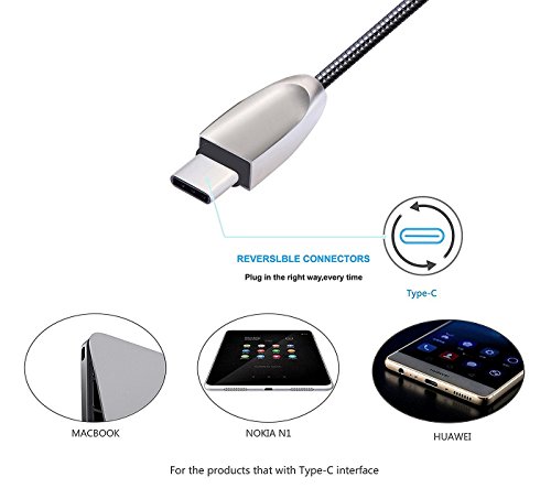 Sweet Tech USB Type-C Cavo a USB 2.0 (3.3ft) Nero Connettori in Metallo Molla Metallica Cavo per Vertex Impress Calypso Smartphone