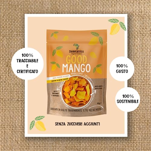 SweetAfrica - Good Mango - Chips di Mango essiccati, pezzi di frutta al mango, snack alla frutta secca (300gr) - 25g x 12pz