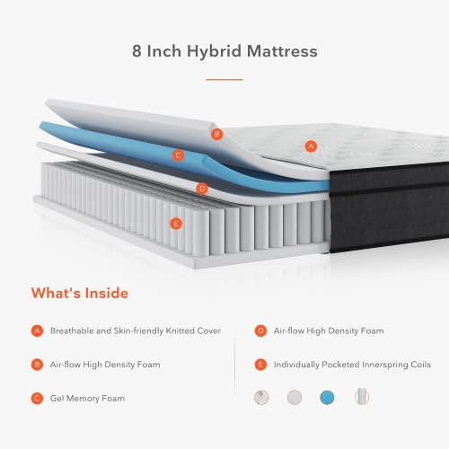 Sweetnight- Materasso Molli, Ibrido in Memory Gel e Molle, Molle Insacchettate Singolarmente e Elasticizzato a Punti, Transpirante, Rigidità Media, Certificato Oeko-Tex (90x190x20cm)