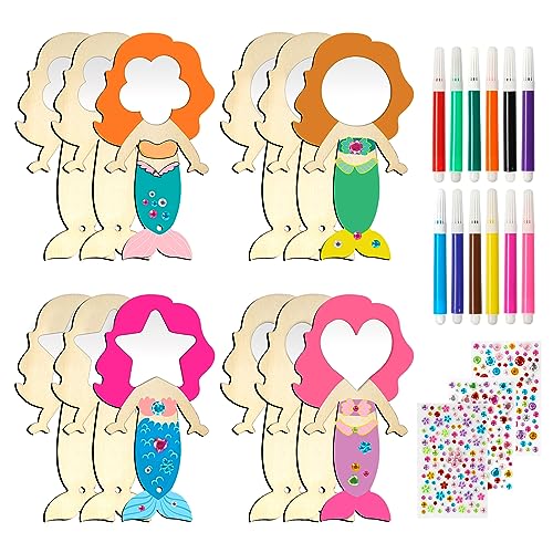 Sweetone Specchio in Legno Fai da Te, 12 Pezzi Lavoretti in Legno per Bambini, DIY Specchio di Legno per Sirena, Lavoretti Creativi per Bambini e Bambine, Regalo di Compleanno, Natale