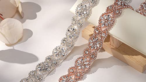 SWEETV Cinturino da sposa con strass Abito da sposa Cintura da damigella d'onore Applique in cristallo per abito da sera, Argento