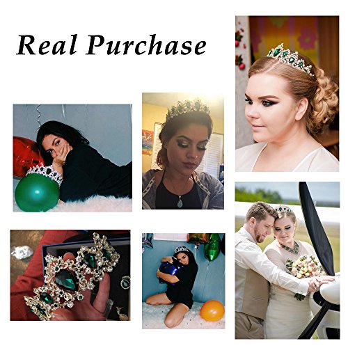 SWEETV Frizzante CZ Cristallo Regina Corona Tiara con Gemme Capelli Accessori Per Matrimonio Prom, Verde+Oro Chiaro