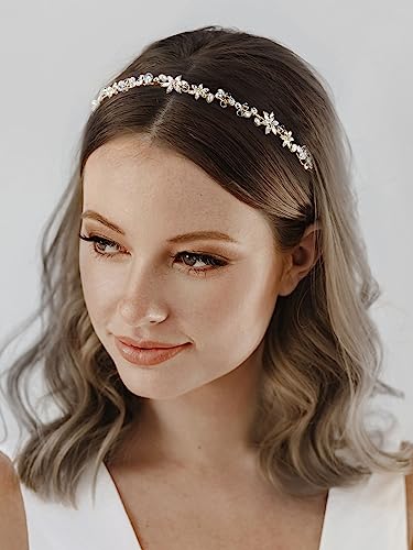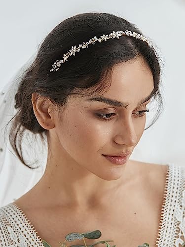 SWEETV Strass Cerchietto per capelli da sposa in oro con vite Accessori per capelli da sposa per spose