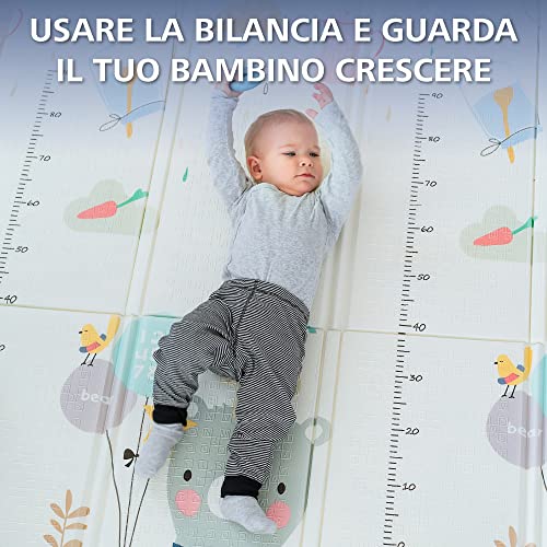 TAPPETO NEONATI MULTIUSO - Il nostro tappeto neonato mesi morbido imbottito si adatta alle vostre esigenze. Può essere il perfetto tappeto gioco bambini pavimento, tappeto palestra, gattonamento, tappeto cameretta bambina o bambino, ma anche un materassino da esterno, in quanto è resistente, così come un tappetino da yoga per i genitori se girato dall'altro lato.