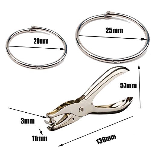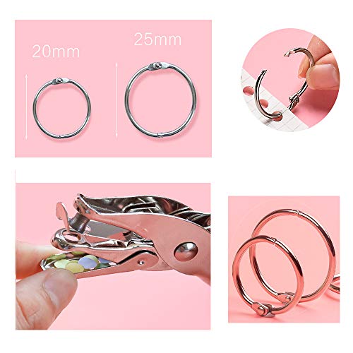 Sweieoni 80Pcs Raccoglitori Anelli Metallo Anelli di Rilegatura, Anelli del Libro, Anelli per Fogli (20mm, 25mm) per Album, Quaderno, Foglia Sfusa, Scrapbook + Perforatrice Foro Singolo Rotondo