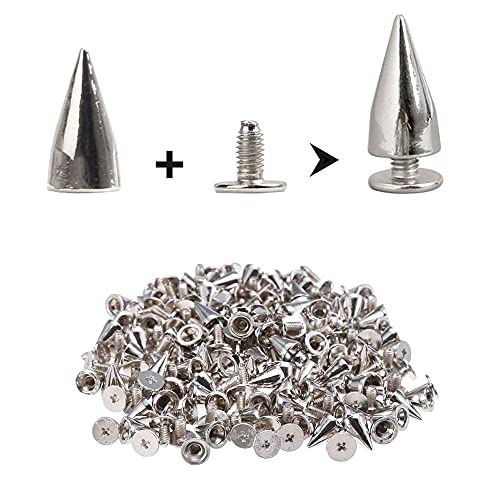 Sweieoni Borchie a Cono 150 Pezzi Rivet Punk Borchie per Vestiti Borchie in Metallo Ferro Borchie a Vite Punk Borchie per Vestiti con Vite (Argento)