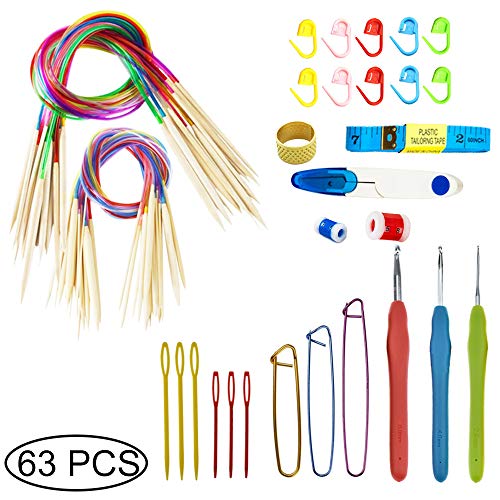 Sweieoni Ferri da Maglia Circolari 36 Paia Ferri Circolari Tubo Colorato Ferri Maglia Circolari Ferri da Maglia Circolari Bamboo Uncinetto Uncinetti Ferri per Maglia Kit con Ferri da Maglia Accessori