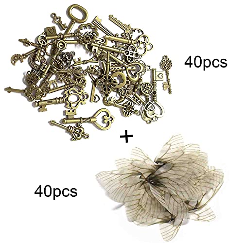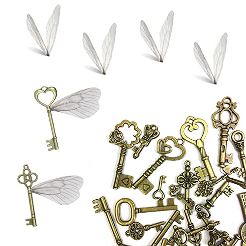 Set di chiavi vintage fai da te: Contiene 40 pezzi di diverse chiavi vintage (stile casuale), con 40 pezzi di ciondolo ala di libellula artificiale bianca e 1 pezzo di filo di cristallo.