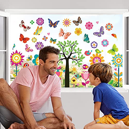 Swetup Decalcomanie Finestre Autoadesive Primaverili Bambini, Adesivi Finestre Estivi Riutilizzabili, Adesivi Vetrofanie Finestre Primavera per Finestre per Baby Accessori Feste in Camera Dei Bambini