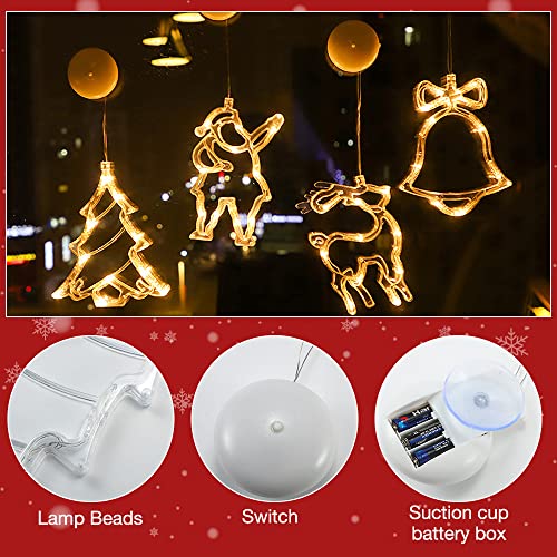Swetup 6Pcs Finestra Natale Luce a Ventosa,Luci di Natale LED a Ventosa, Luci di Natale a LED Luce a Sospensione Babbo Natale Pupazzo di Neve Della Renna del Fiocco di Neve Albero di Natale per Natale