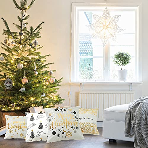 Swetup Set di Fodere per Cuscini Natalizi, 4 Pcs di Fodere per Cuscini Happy New Year, Federa per Cuscino con Stampa in Lamina Doro Divano Letto Fodera per Cuscino per Decorazioni per la Casa, 45*45cm