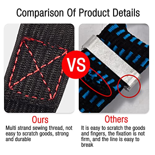 Design Piatto Largo 3 cm: La robusta gomma di tensionamento piatta regolabile con cinturino agganciato aiuta a distribuire la pressione su unarea di carico più ampia. funi di gomma ha 2,5 volte la resistenza alla trazione e unelevata capacità di carico. Non preoccuparti delle dimensioni delloggetto che causano il problema che la corda non può legare loggetto.