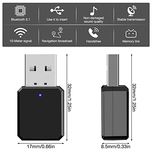[Buone Prestazioni]: Il nostro dispositivo bluetooth usb per auto grazie al chipset e alla tecnologia avanzati, il ricevitore ha prestazioni migliori, supporta la versione bluetooth BT5.1, A2DP, AVRCP, la distanza di trasmissione può raggiungere i 10 metri, più stabile, nessun ritardo.