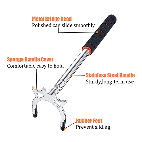 Corpo dell'asta di alta qualità e testa del ponte: il ponte retrattile per stecca da biliardo è realizzato in acciaio inossidabile, impugnatura in spugna ad alta densità. Può prolungare efficacemente la durata del prodotto e la testa del ponte è diversa dalla testa del ponte in plastica economica, è realizzata in ottone, robusta, durevole e ha una superficie liscia.