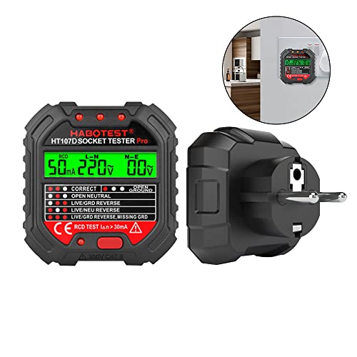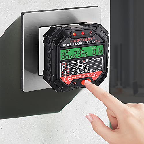 [Tester per Prese Elettriche Portatili]: Tester per prese avanzato per rilevare rapidamente se la connessione del cavo della presa è corretta o meno. Dimensioni compatte, leggero e comodo da usare. Con display LCD retroilluminato di tensione per testare la tensione.